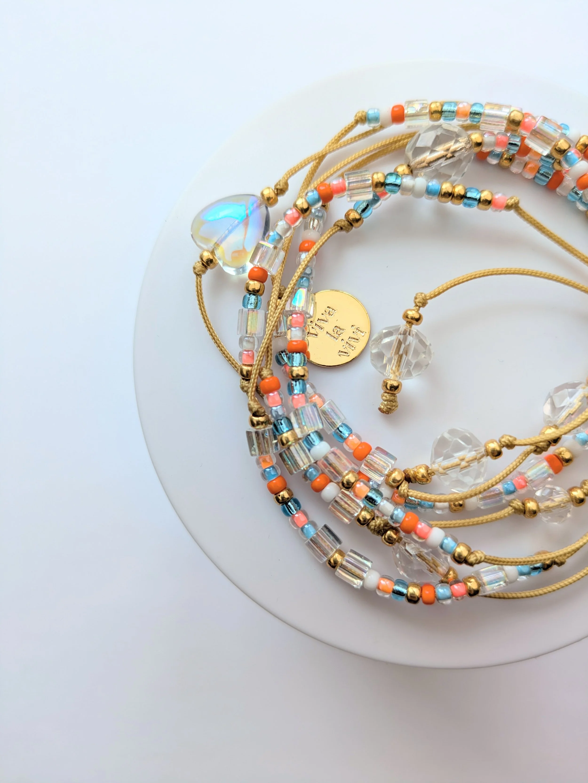 Material: Hochwertigwr Nylon- Macramé Faden, Glasperlen in verschiedenen Formen und Grössen.